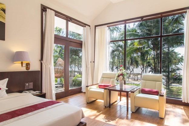 Khu Resort nằm trải dài trên 90 hecta không gian vườn cây với 142 phòng Deluxe hiện đại và Bungalow cao cấp cùng với nhiều tiện ích khác như Hồ Bơi, công viên nước, khu nhà hàng Ẩm thực, Phòng Spa và phòng gym với trang thiết bị hiện đại. Đây là nơi nghỉ dưỡng hoàn hảo với diện tích rộng lớn,với vị trí nằm ngay sát bãi biển, khu resort sở hữu riêng bãi biển rộng với hơn 200m cát trắng mịn màng chỉ mất vài bước chân là bạn đã có thể ngắm nhìn cảnh sắc biển tuyệt đẹp.