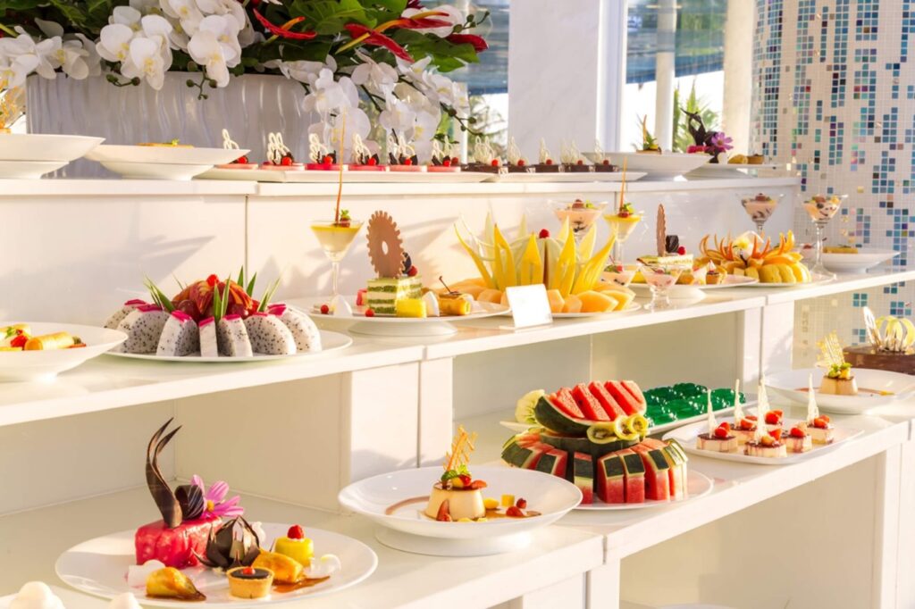 Nằm ngay cạnh hồ bơi cùng thiết kế hiện đại, sang trọng, nhà hàng Azzurri ghi điểm với không gian ẩm thực tuyệt hảo. Những bữa ăn sang trọng, lãng mạn bên hồ bơi với các món hải sản hảo hạng và những ly rượu vang thơm lừng là điểm cộng đặc biệt của Azzurri.