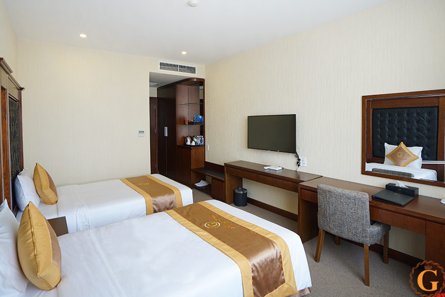 Phòng Superior Twin với không gian thoáng đãng, view cửa sổ rộng lấy sáng tự nhiên. Thiết kế phòng ốc tinh tế, tối giản các chi tiết rườm rà nhằm mang đến cảm giác nhẹ nhàng, hoàn toàn thư thái cho quý khách. Sự kết hợp giữa nội thất cao cấp cùng trang thiết bị phòng hiện đại sẽ khiến quý khách hài lòng khi lựa chọn dịch vụ tại Grand Móng Cái Hotel