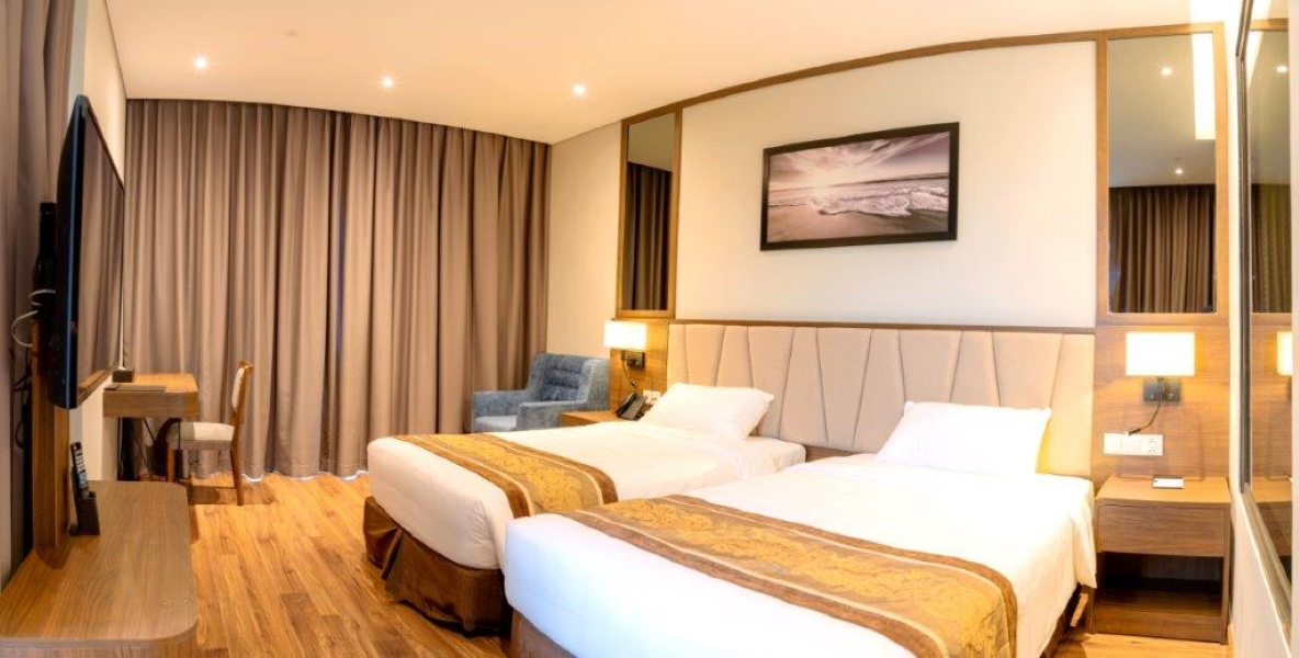Deluxe Room Sea ViewDiện tích: 32m2 Hướng biển Phòng dành cho 02 người lớn và 2 bé dưới 6 tuổi Có 2 giường đơn hoặc 1 giường đôi cỡ lỡn